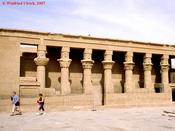 ![[S. 6]: Kapitell 4](http://www.aegyptologie.com/forum/attachments/fotos/thumbs/6Saeulenweg_aussen.jpg) | Die heute auf der Insel zu sehenden Bauten stehen nicht mehr auf der ursprünglichen Insel Philae. Sie sind wegen der Überflutung durch die Staudämme auf die benachbarte Insel Angilkia umgesetzt worden, die heute Philae genannt wird.