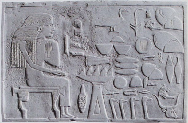 Die Opfergaben scheinen chaotisch zusammengestellt zu sein. Sie bestehen aus Broten, Getränken, Fleisch und Geflügel, aus den Grundbestandteilen des Totenopfers, alles das, was zum Weiterleben benötigt wird. Sie haben sich zu festen Anordnungen entwickelt, die Kaplony als "Listen" bezeichnet hat.