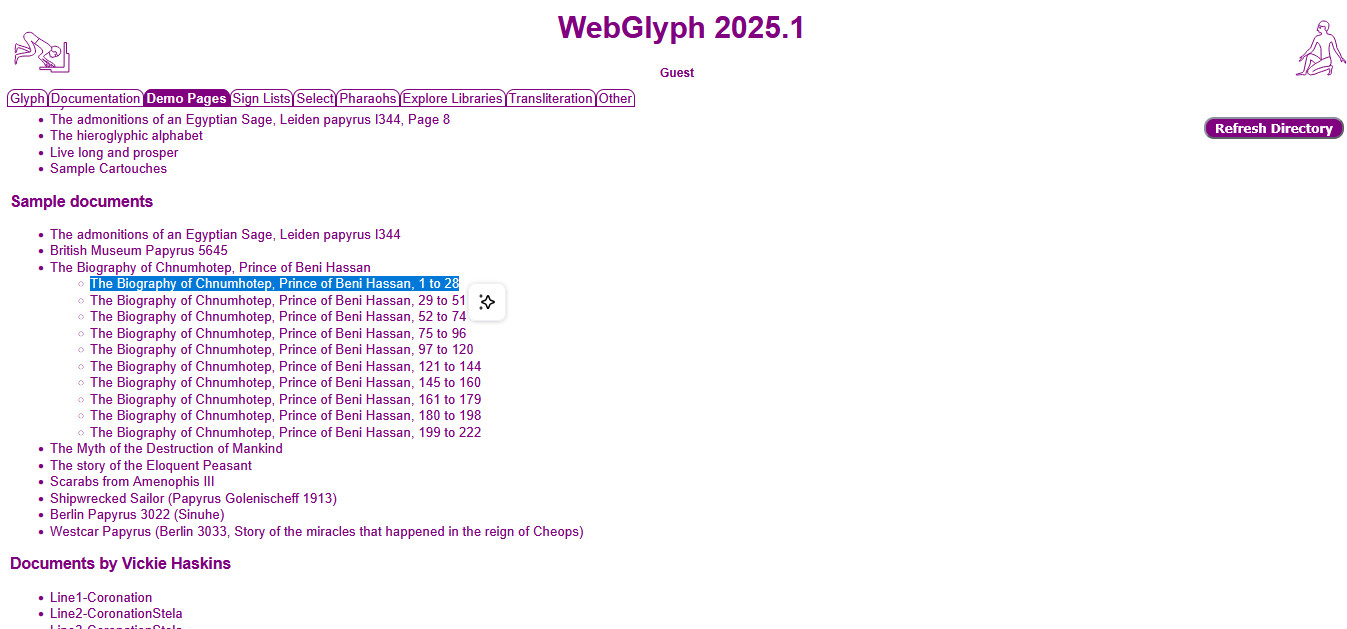Klar die Screenshots kannst du verwenden. Du solltest nur aus Urheberrechtlichen Gründen erwähnen, dass der gezeigte Text nicht von mir selbst, sondern aus einem Beispieltext von WebGlyph stammt (The Biography of Chnumhotep, Prince of Beni Hassan, 1 to 28 by Kanawati & Evans (2014), coding Jan Buurman, siehe Screenshot). Das Rendering des Textes hat allerdings die App übernommen. Hier ist auch der Source Code. |