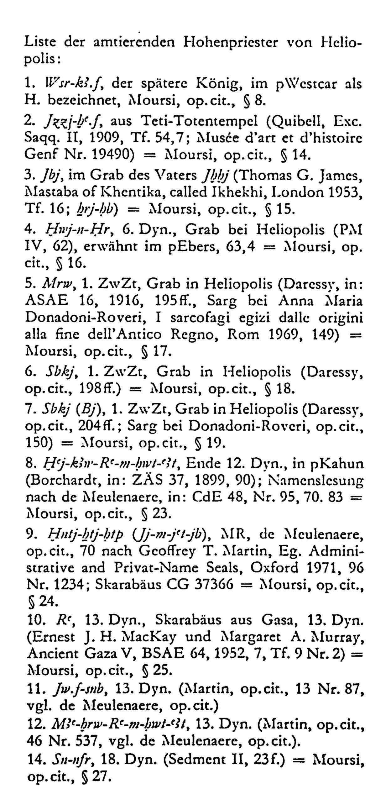 Hallo, Chontamenti, im Lexikon der Ägyptologie, Bd. 2, Wiesbaden, 1977, Spalte 1249-1254 gibt es einen Eintrag "Hoherpriester von Heliopolis" mit einer Liste, deren Anfang ich anhänge. Sie geht noch weiter bis zur Spätzeit und laufender Nr. 35. Danach kommen nur Nr. 8 und 9 in Frage. Nr. 8 wird ans Ende der 12. Dyn. datiert, Nr. 9 unspezifisch "MR" (Mittleres Reich). Somit lässt sich Deine Frage nur mit "Nein" beantworten; es sei denn, dass nach 1977 weitere Hohepriester von Heliopolis gefunden wurden, was sich meiner Kenntnis entzieht. Viele Grüße, Michael Tilgner