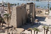![[S. 15]: Luxor-Tempel, Pylon](https://www.aegyptologie.com/forum/attachments/fotos/thumbs/IMG_5608_DxO_raw.jpg) | Dicht neben dem Luxor-Tempel steht eine Moschee mit einem recht hohen Minarett. Auf Einladung des lokalen Leiters des SCA hatten wir Gelegenheit, von diesem Minarett aus Aufnahmen von Luxor und Umgebung, vor allem aber vom Luxor-Tempel zu machen. Die Fotos in diesem Album sind nur ein Teil der Ausbeute, geben aber eine repräsentative Sicht auf "Luxor und Luxor-Tempel von oben". Hier ist nebenbeizu vermerken, dass Nauna - ohne die eiserne Wendeltreppe im Minarett je gesehen zu haben - am Eingang der Moschee den Aufstieg "verweigerte" - daher nur Bilder von mir. |