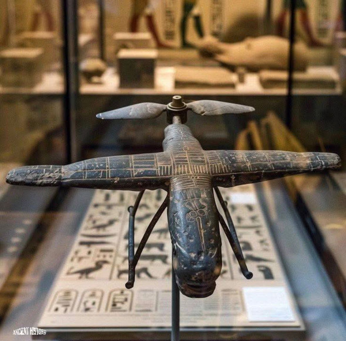 Interessant, denn dein Hinweis auf den bereits 1891 entdeckten Vogel von Saqqara könnte zutreffend sein ! Ich habe einmal zwei Fotos in den Dateianhang eingestellt, welche das Original vermutlich 1983 im Ägyptischen Museum zu Kairo zeigen. Die Aufnahmen wurden 2008 von Dawoud Khalil Messiha in Creative Commons gegeben. Bemerkenswert ist, wie stark die KI in dem eingangs von dir veröffentlichten Foto hier vergleichsweise ganz eigene Innovationen hervorbringt, etwa den Propeller im Bereich des Leitwerks. Die KI berücksichtigt hier offenbar die in der Vergangenheit geäußerten Vorstellungen und Wünsche einiger Forscher und Amateure. So hatte beispielsweise der Arzt und Archäologe Khalil Masiha 1983 die Auffassung vertreten, dass es sich bei diesem kleinen hölzernen Vogel, welcher 1891 bei Grabungen in dem um 200 v. Chr. angelegten Grab des Pa-di-Imen aufgefunden wurde, um das Model eines Eindeckers bzw. Hochdeckers handeln würde, genauer um ein nicht motorisiertes Segelflugzeug, dessen Original sich noch am Fundort in Saqqara befinden würde, aber bislang nicht publiziert wurde bzw. seither unauffindbar geblieben ist. Ein Upload File auf Wikimedia von Herrn Dawoud Khalil Messiha aus dem Jahre 2008 zeigt den Vogel aus dem Grab des Pa-di-Imen wahrend einer Ausstellung im Ägyptisches Museum Kairo und könnte die Vorlage für die aktuelle, bei dir gezeigte KI-Bearbeitung gewesen sein : https://upload.wikimedia.org/wikipedia/commons/c/c1/Photo_1-plane_front_view1.jpg LG Lolli